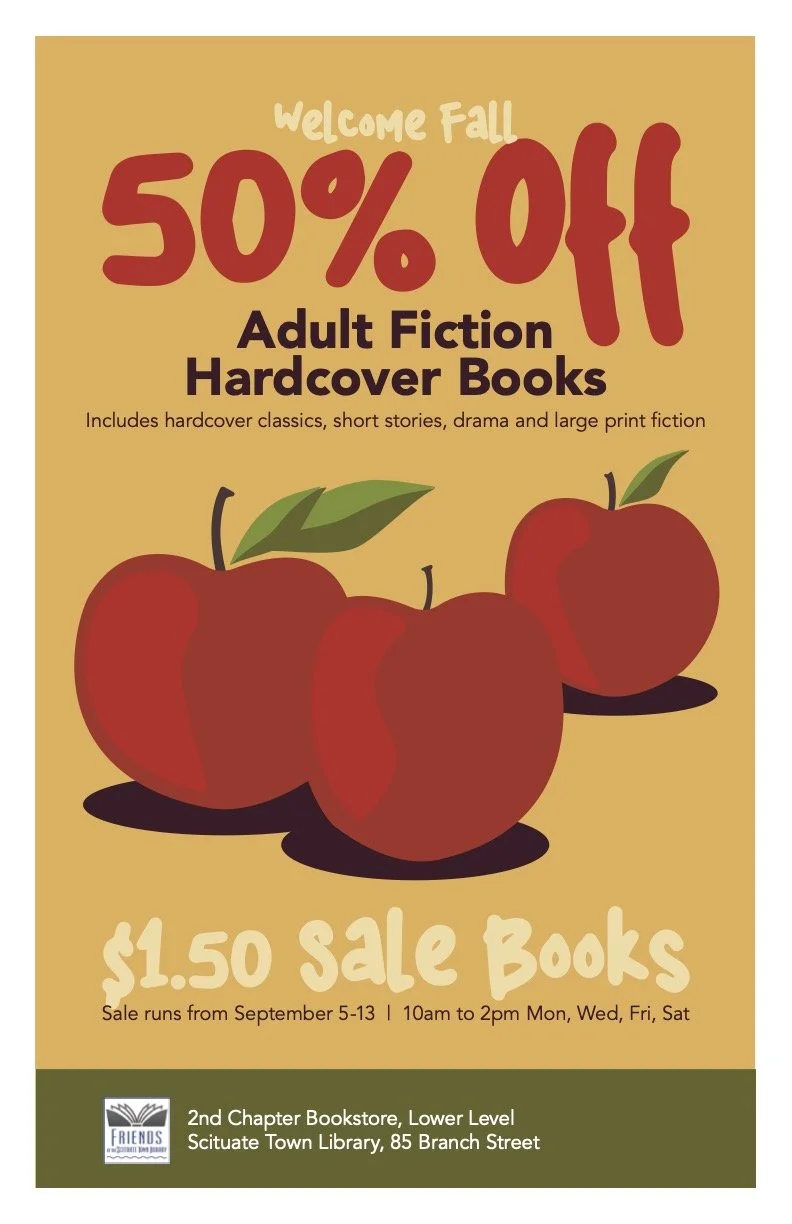 The Friends of the Scituate Town Library (Friends) was established in 1972 to support the Scituate Town Library by promoting its mission as a cultural and educational center for all community members. The financial support of the Friends - derived from your donations and 2nd Chapter Bookstore purchases - supplements the library’s annual budget and enables the library to provide a vast array of programs, events, and activities. These enriching, educational, and fun offerings help to foster a spirit of inclusion for children, teens, and adults.
